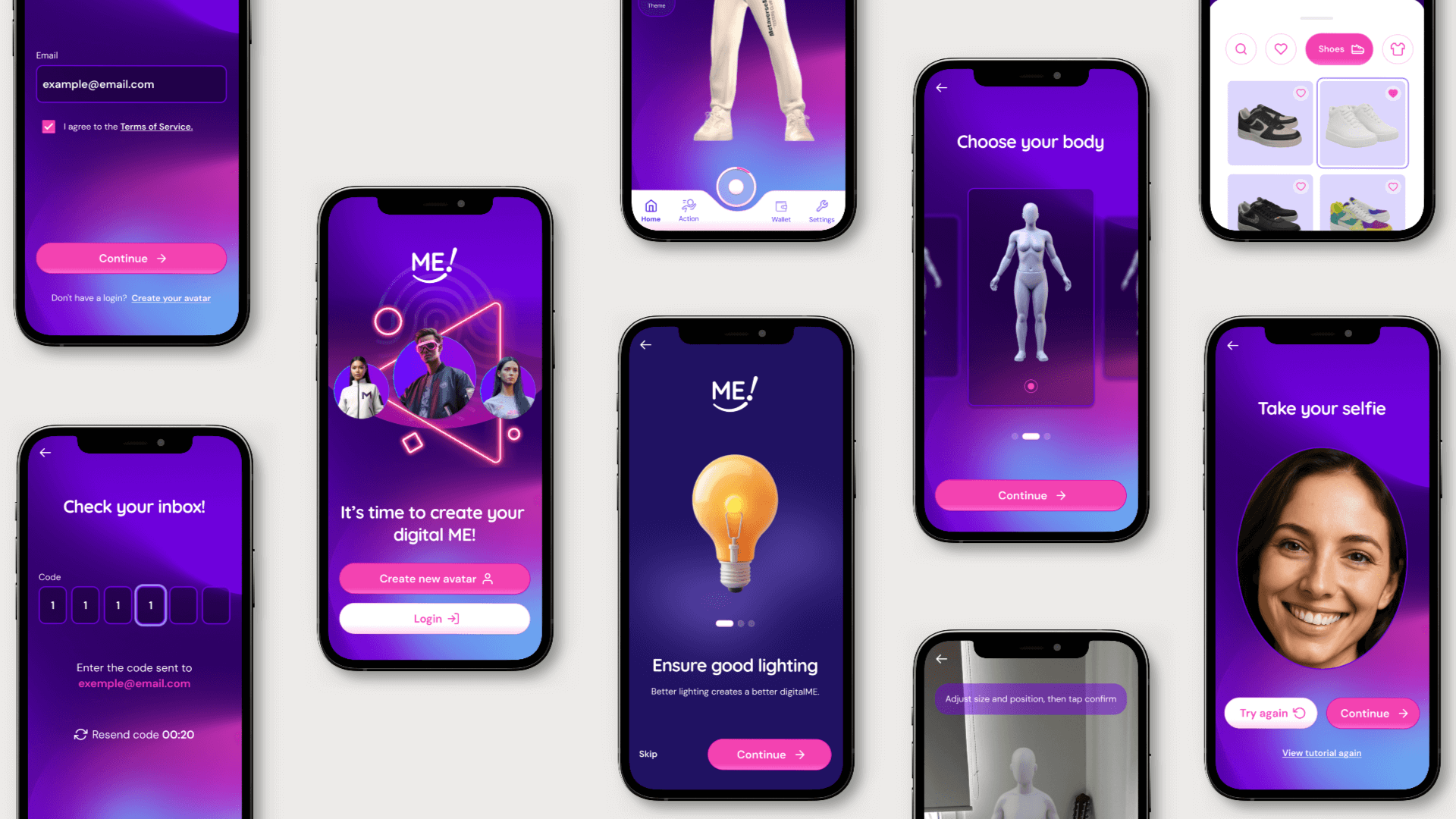 MetaverseME is a European startup based in Malta, with collaborators in the UK, focused on immersive digital self-expression experiences. Their core product, the Avatar ME! App, transforms selfies into realistic 3D avatars using AI. When I joined, the company was preparing for its first public launch. Development was already advanced, but there was no design team or design direction. I was brought in for a focused and short-term collaboration to define the visual strategy, refine the layouts, and create the foundational design system that could evolve alongside the product roadmap.