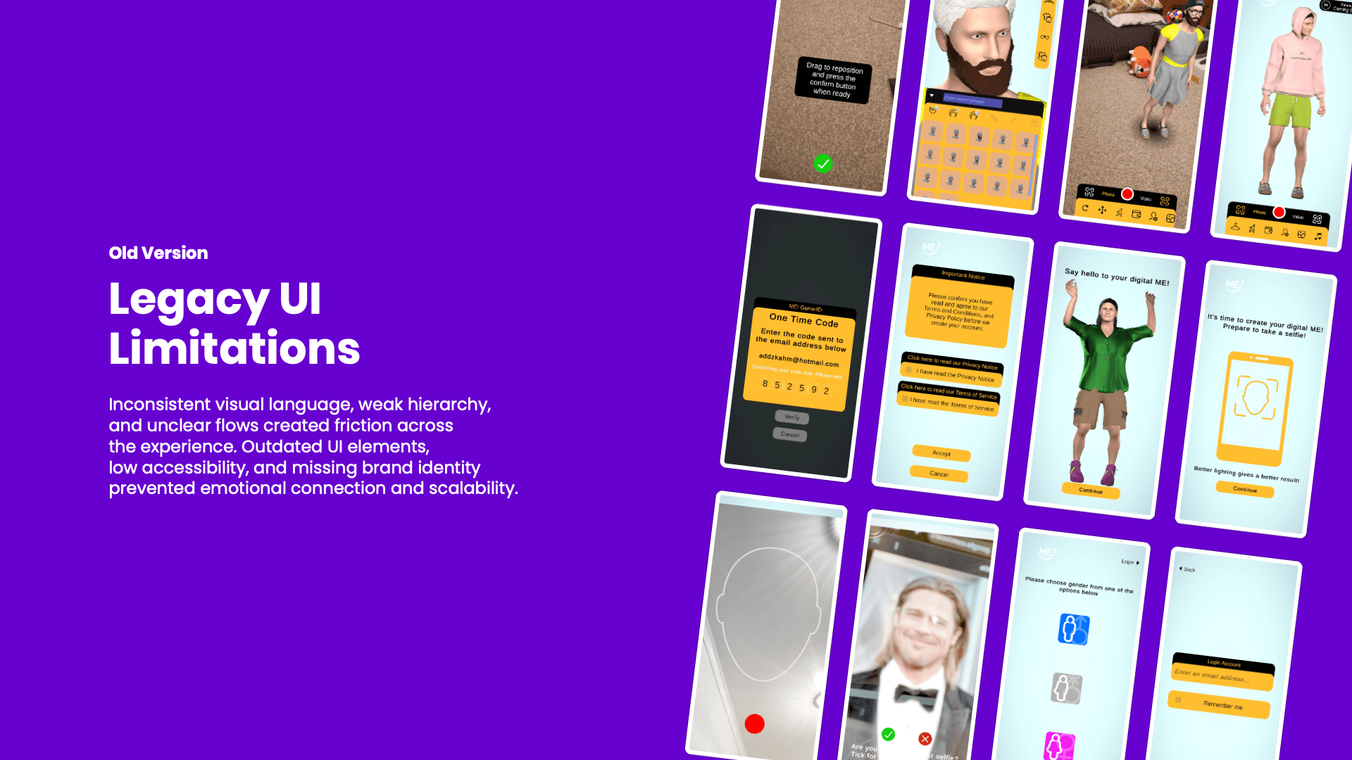 I improved crucial screens such as onboarding and avatar creation without altering backend constraints, enhancing usability and visual cohesion.